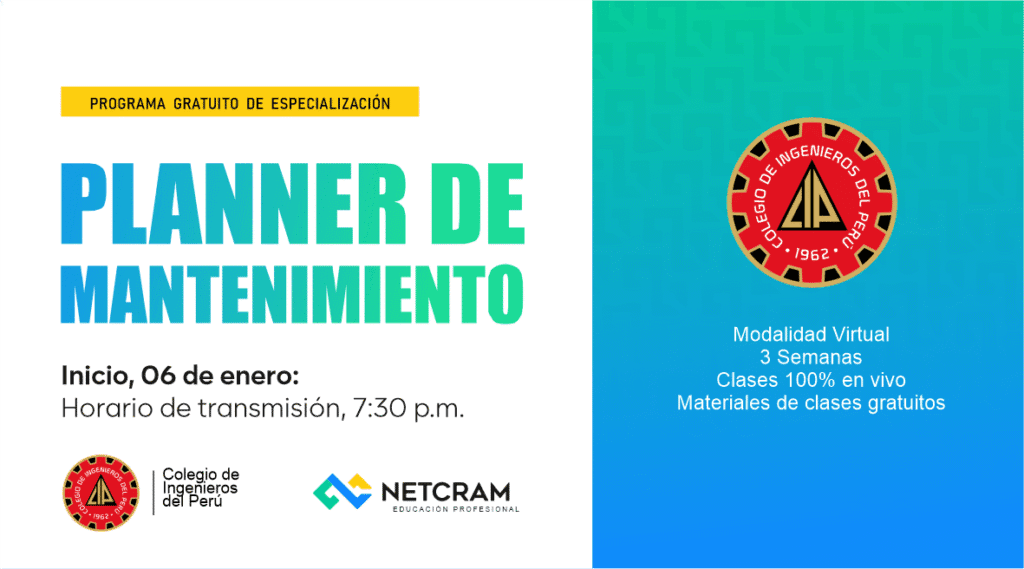 ¡Comienza ya! tu jornada laboral con el programa de especialización como Planner de Mantenimiento 100 % gratuito!